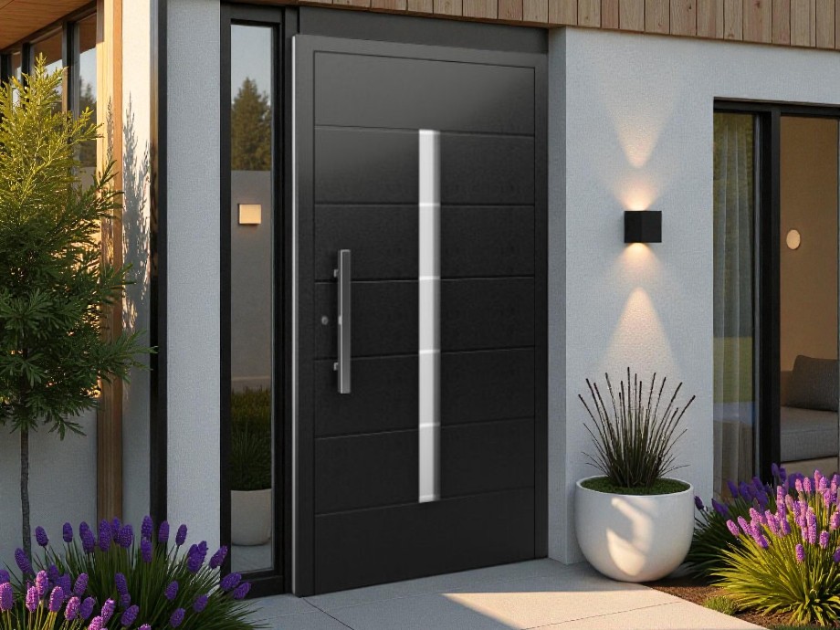 Cette porte d’entrée en aluminium allie un design moderne et minimaliste à d’excellentes performances thermiques. Son ouvrant affleurant, ses finitions soignées et son vitrage décoratif vertical apportent élégance et caractère à toute façade. Elle convient aussi bien aux constructions neuves qu’aux rénovations exigeantes.